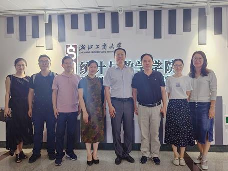 随后,武斌一行赴浙江工商大学统计与数学学院调研座谈。座谈会上,浙江工商大学统计与数学学院院长陈振龙对武斌一行人员的来访表示热情欢迎,双方交流了学科发展历程、教学管理模式、师资队伍建设等情况,探讨了师资引进、人才培养、专业建设、教学改革等方面的经验,并参观了特色文化墙建设。