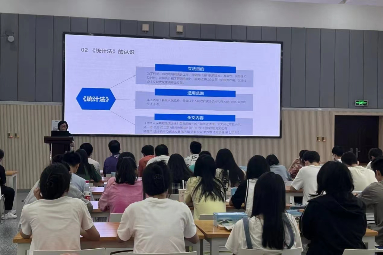 当天下午,金华调查队还进行了统计法律法规讲座,执法监督处负责人向统计系师生们介绍了政府统计发展历史、统计调查的基本任务、统计调查对象权利与义务等内容,并介绍了五经普系列知识,统计师生受益匪浅。