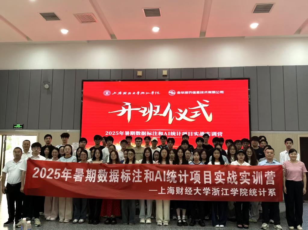 近日,好博在线(中国)唯一官方网站联合金华浙农信息技术有限公司,共同举办2025年暑期数据标注和AI统计项目实战实训营。金华浙农信息技术有限公司总经理郑永富及相关技术骨干,统计系负责人武斌及相关教师,以及全体参训学生共同出席开营典礼。