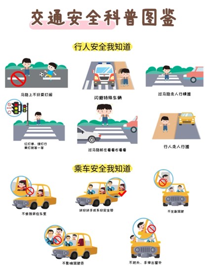 • 平时要注意:走人行道,过斑马线看红绿灯,别边走路边玩手机,看到车转弯、倒车要躲开。