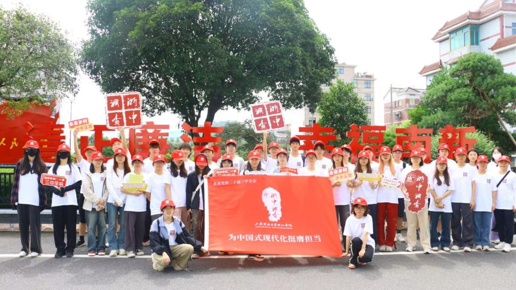 “千万工程”实施二十年来,浙江农村面貌焕然一新。在调研活动中,4名学生宣讲员和1名思政教师聚焦调研主题,以乡间为课堂,与师生同上了一堂理论与实践相结合的“大思政课”。百余名学生走街串巷感受风土人情、进村入户体察社情民意,用脚步丈量八婺大地,共同探寻浙江美丽乡村蝶变“密码”。